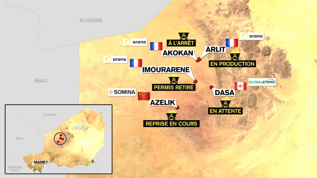 Le régime militaire a annoncé mettre l’uranium sur le marché international. « Seule la Russie a manifesté un intérêt » et « seule la Russie peut l’exploiter », affirme un connaisseur du sujet a « Franceinfo ». Le groupe français Orano rappelle qu’en vertu d’un arbitrage international rendu en septembre, le Niger n’a pas le droit de vendre ni même de transporter cet uranium.
