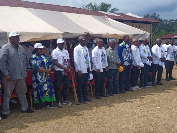 Alors que Tchibanga, la capitale provinciale de la Nyanga recevait il y a quelques jours, le « président-candidat » Brice Clotaire Oligui Nguema, les membres de sa coordination provinciale de campagne se sont déployés ce jour, vendredi 4 avril 2025 dans la commune de Mabanda et dans le District de Ndenguilila, invitant les populations à voter pour leur candidat le 12 avril prochain.
