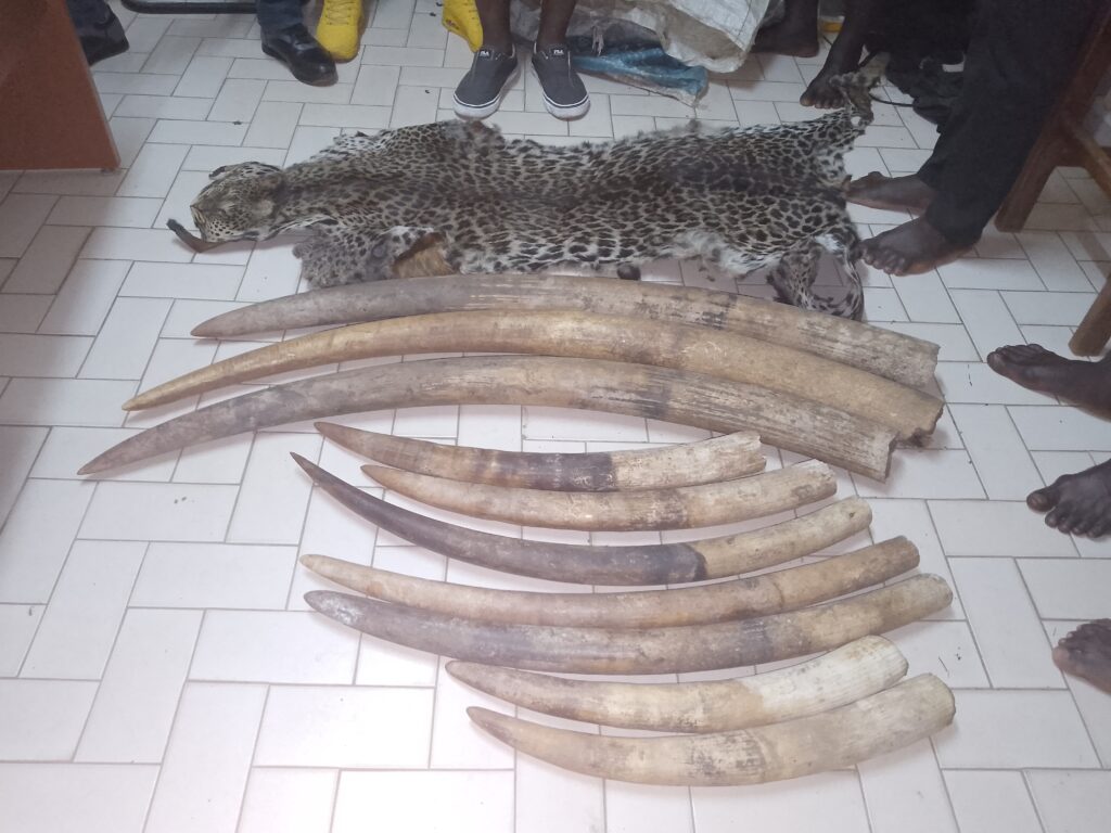 Durant l’opération, une personne identifiée sous les initiales P.O. avait en sa possession les dix défenses d’ivoire et la peau de panthère qu’il tentait d’écouler illégalement. M.N et M.M qui l’ont aidé à transporter lesdites ivoires dans un véhicule et qui l’attendaient dehors ont aussi été appréhendé par la police.